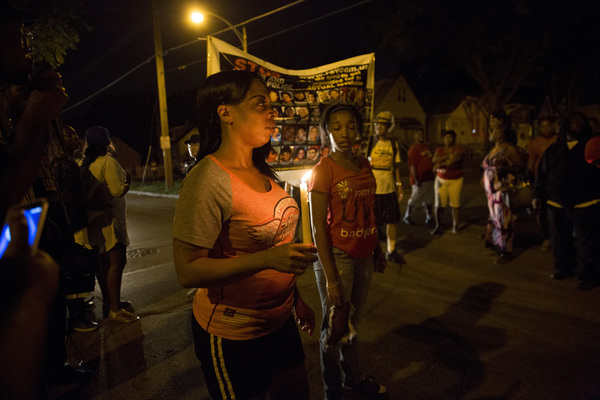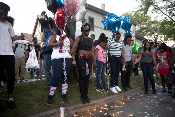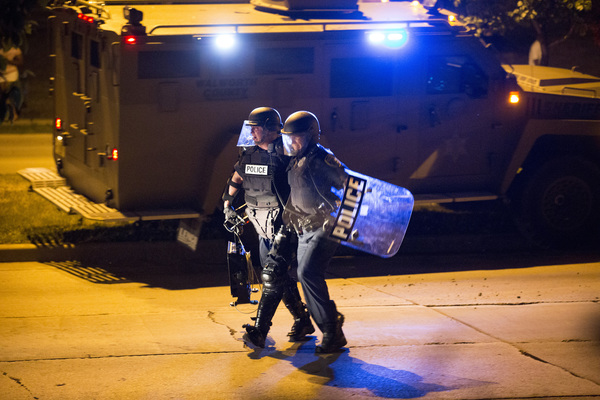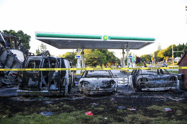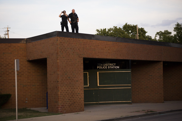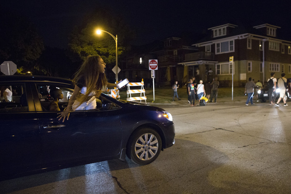At one point, the officers got in their cars to leave and some in the crowd started smashing the windows and side of a squad car. Another vehicle was set on fire. As officers returned to the scene, this time more in riot gear, as many as seven shots could be heard about 8:45 to 9 p.m.