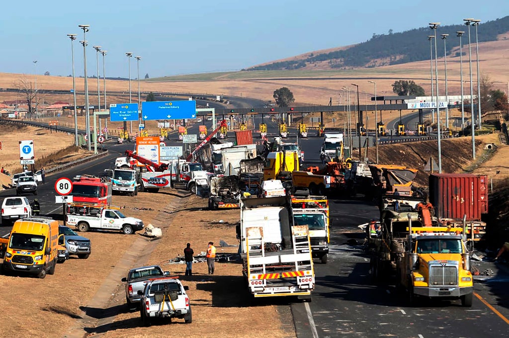 Supporters of former South African president Jacob Zuma are protesting his imprisonment, burning trucks, commercial property, and blocking major roads in KwaZulu-Natal province. They are demanding that he be released from prison.