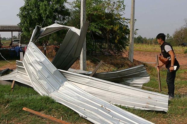 Ruj Rangsee, the chief of Ban Phai district in Khon Kaen, said at least 100 houses were damaged by the storms, which continued into the early hours of Monday.