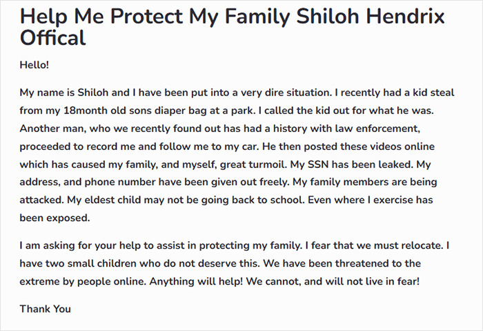 The viral video caused her and her family “great turmoil,” Shiloh claimed in her fundraiser