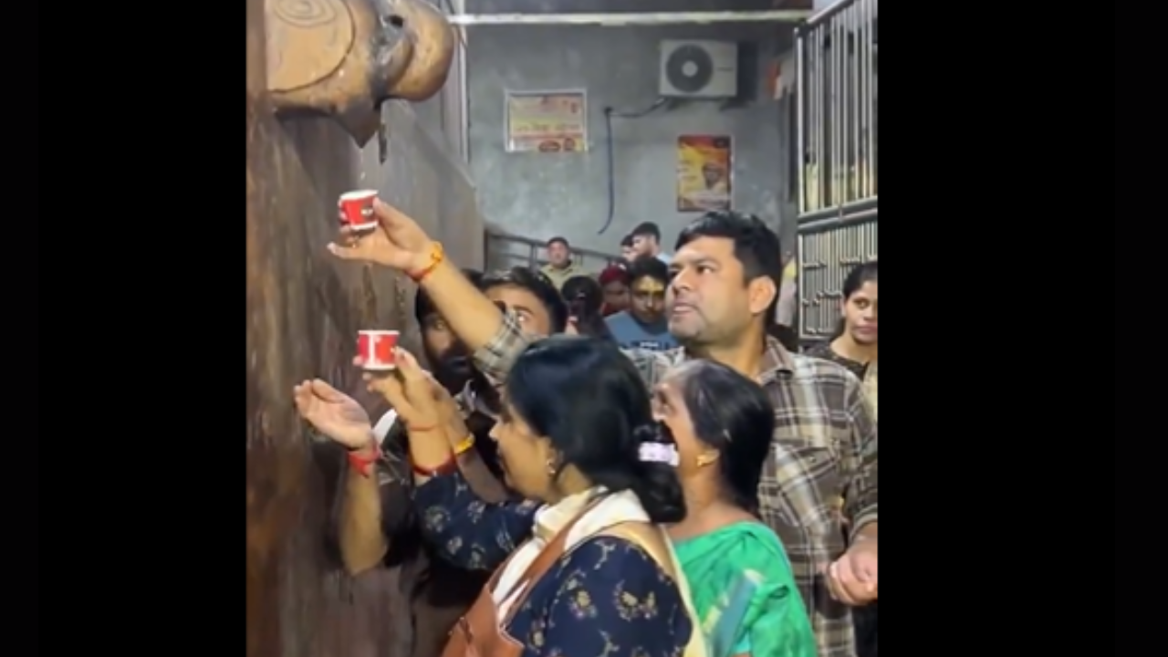 A video is going viral over the social media where a group of devotees are seen drinking water from an outlet. While the devotees assume it to be the charanamrit of Lord Krishna and consider it to be holy water, many claim it to be discarded water from the air conditioner.