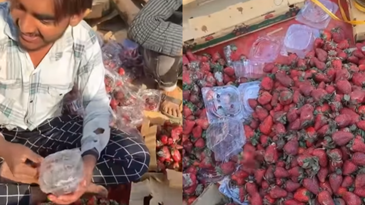 A video is going viral over social media where vendors are seen picking rotten strawberries and packing them in small plastic boxes that are often used to store and sell the strawberries.
