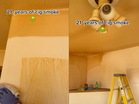 A professional cleaner has gone viral on TikTok after sharing clips of the cleaning process to remove stains and discolouration from the inside of a home after it was exposed to 21 years of cigarette smoke.