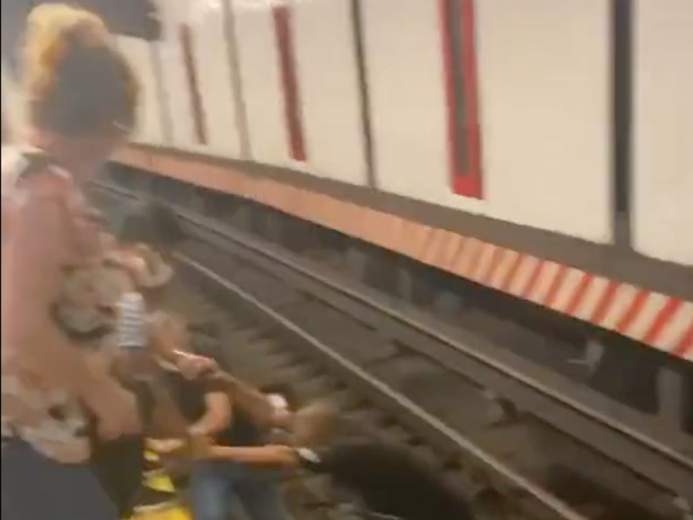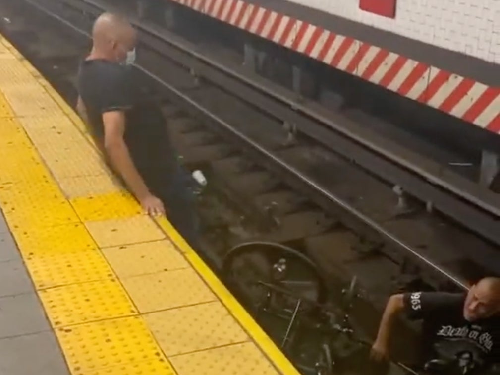 (Picture: Twitter)A group of bystanders worked together to rescue a wheelchair user who had fallen onto the subway tracks on Wednesday – seconds before an oncoming train barreled into the station.