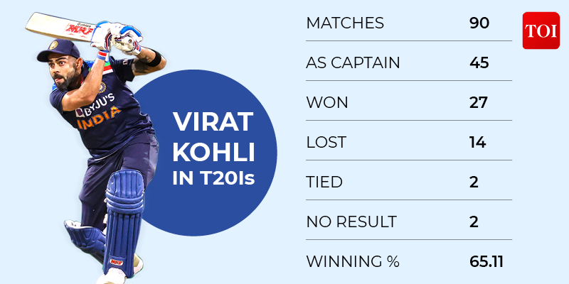 Till date, Virat has played 90 T20Is, in which he has led India in 45 matches. India won 27 matches under Virat's captaincy out of those, while losing 14 games. Two matches were tied and two had no result. This gives Virat a winning percentage of 65.11 in T20Is so far, which is very good.