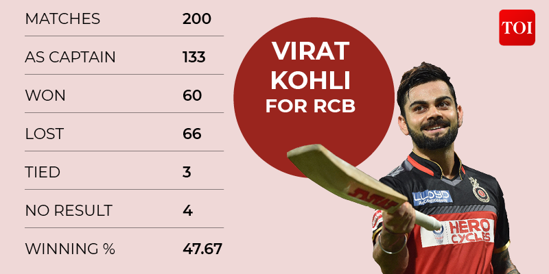 Virat has played 200 matches for RCB overall, having been with only one franchise since the beginning of the IPL in 2008. He has led the team in 133 games. Under his captaincy, RCB has so far won 60 matches and lost 66 games. Three matches were tied and four bore no result. Virat has a winning percentage of 47.67 while leading RCB.