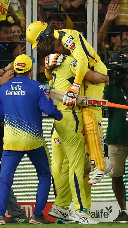 <p>Ravindra Jadeja scripted a fairytale ending to his IPL 2023 journey as he smashed the required 10 runs in the final two balls, securing Chennai Super Kings their fifth title.<br /></p>TOI Sports9/10:Dhoni-Jadeja hug after winning IPL 2023