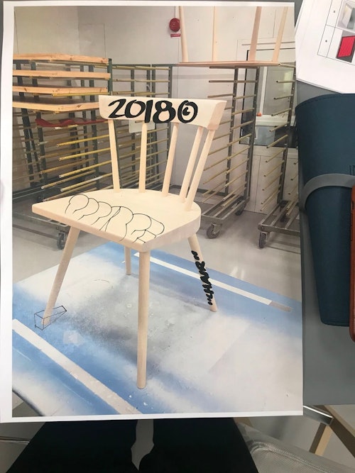The winner of the Ikea chair will have their name written on it by Abloh, just as he did with the Air Jordan 4. A digital mockup of his illustration also indicates he'll use his signature air quotes for "chair" and will add the year the collection went on sale, 2018.