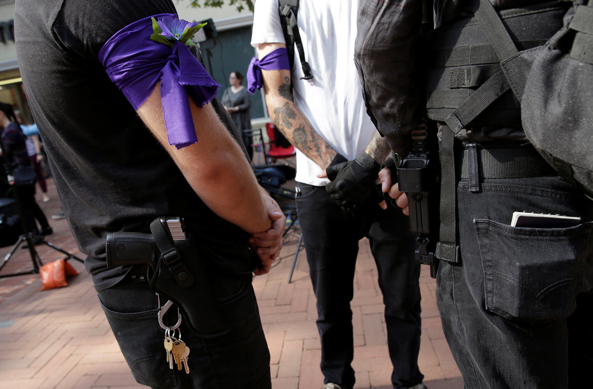 One of the group, who declined to be identified, said they brought weapons to defend themselves in case the white supremacists returned.