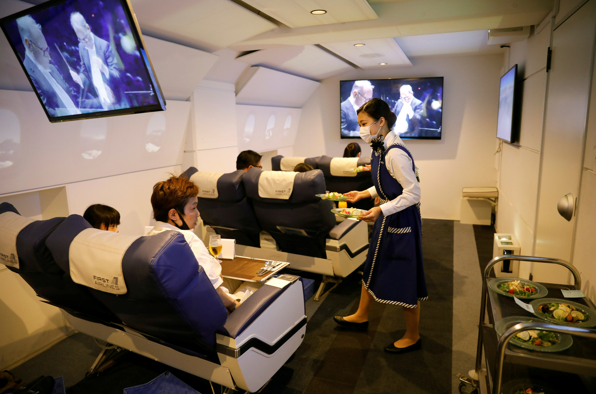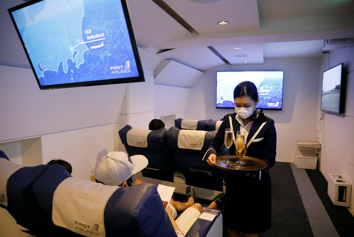 Inoue, 56, and his wife "flew" as clients of Tokyo entertainment company First Airlines, which is tapping into a growing virtual reality travel market for Japanese holidaymakers grounded by coronavirus restrictions.