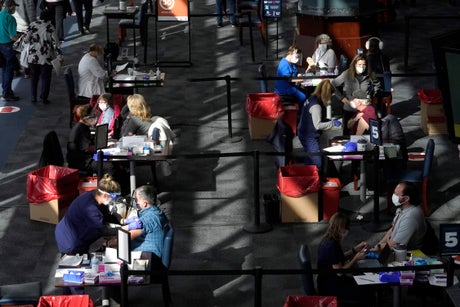 — The White House said the U.S. is vaccinating some 1.7 million people per day, up from under 1 million a month ago. New figures from the White House show the steady increase in the pace of vaccinations over President Joe Biden’s first month in office The data comes from the Centers for Disease Control and Prevention. Much of the uptick comes from people receiving their second dose of the approved vaccines from Moderna and Pfizer. The pace of first dose vaccinations has been largely steady over the past several weeks, hovering around an average of 900,000 shots per day. Biden is on track to blow past his goal of 100 million injections in his first 100 days in office — though the pace must pick up even further to meet his plans to vaccinate nearly all adults by the end of the summer.