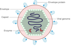 Viruses are comparatively simple in structure, consisting of a piece of genetic material (RNA or DNA) enclosed in a protein coat (the capsid). Some also have an outer envelope.