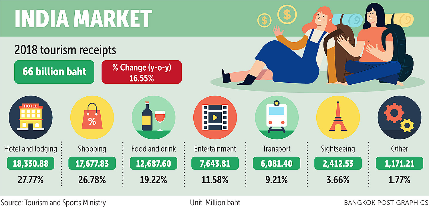 Last year, tourism receipts from the India market totalled 66 billion baht, a 16% increase from the year before.