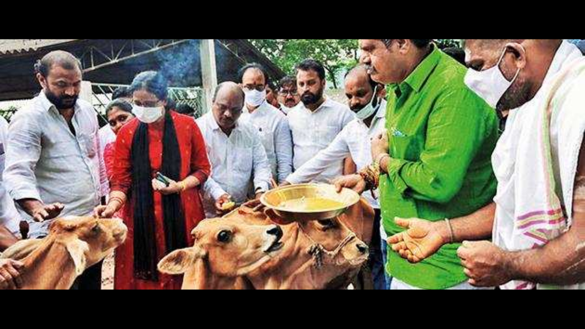 AP Sadhu Parishad president Swamy Srinivasananda Saraswathi visited the gosala and expressed dissatisfaction over the maintenance of the cowshed in which he found a few empty liquor bottles and pieces of glass. Around 400 cows are presently kept in the cowshed.