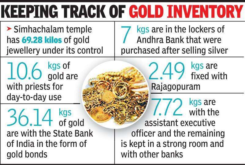 Speaking to TOI, executive officer of SimhachalamTemple, M V Suryakala, said that as per practice, jewellery in the possession of the temple should be updated every three years. But, due to various reasons, the gold audit was not done for 12 years. The EO said a two-member team of the endowments department from East Godavari began the exercise to assess the value and weight of each gold ornament. Tne process is likely to be completed within two days.