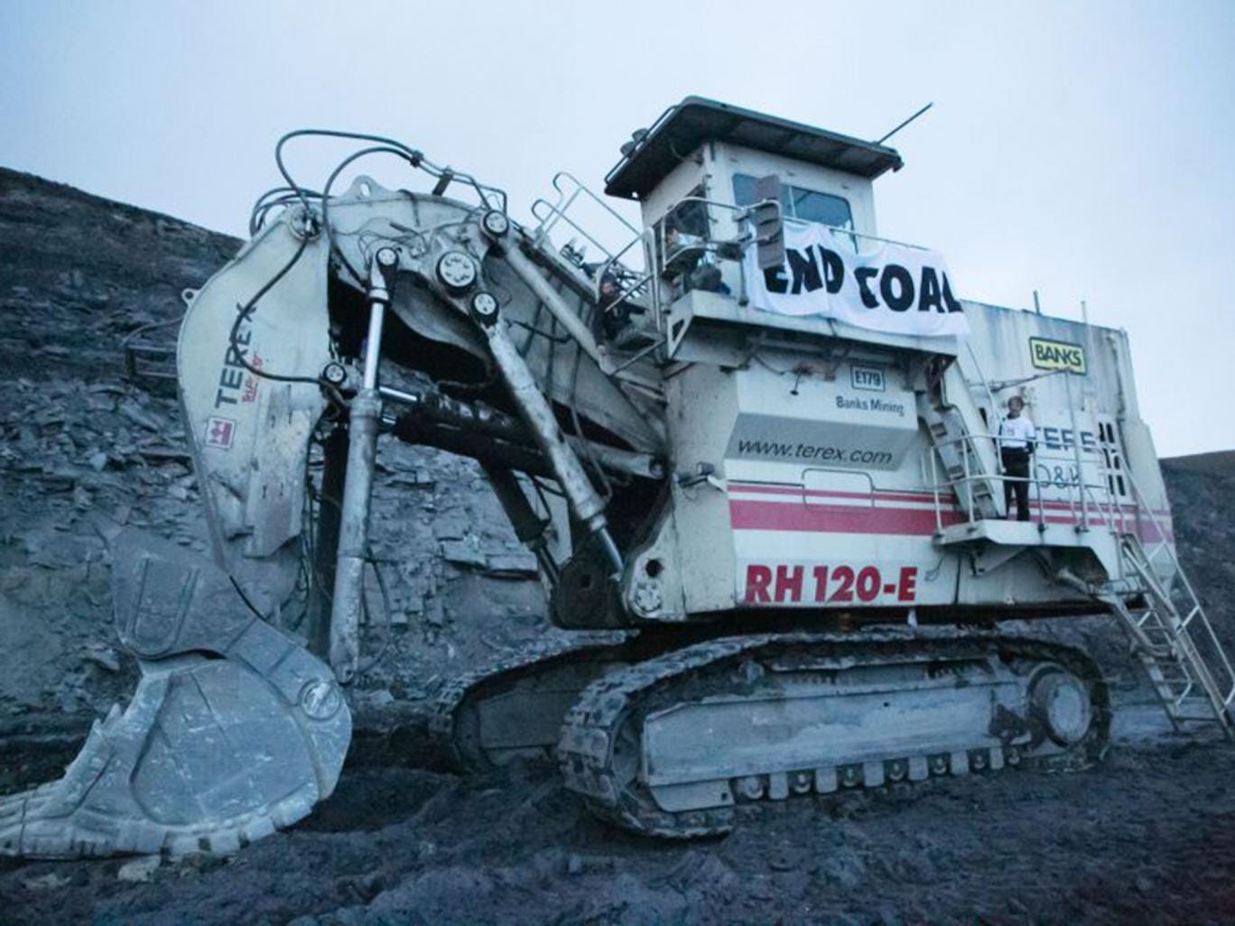Protesters have stormed a coalmine on the Northumberland family estate of Viscount Matt Ridley, a prominent climate change sceptic and Conservative member of the House of Lords, halting production by chaining themselves to a giant excavator.