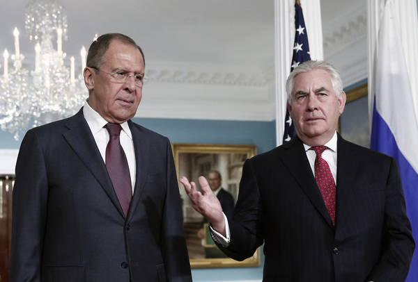 Lavrov appeared briefly with Secretary of State Rex Tillerson before the two headed into talks. Afterward, the Russian diplomat was to head to the White House for a meeting with President Donald Trump.