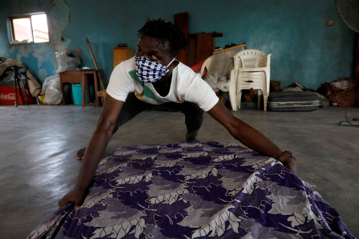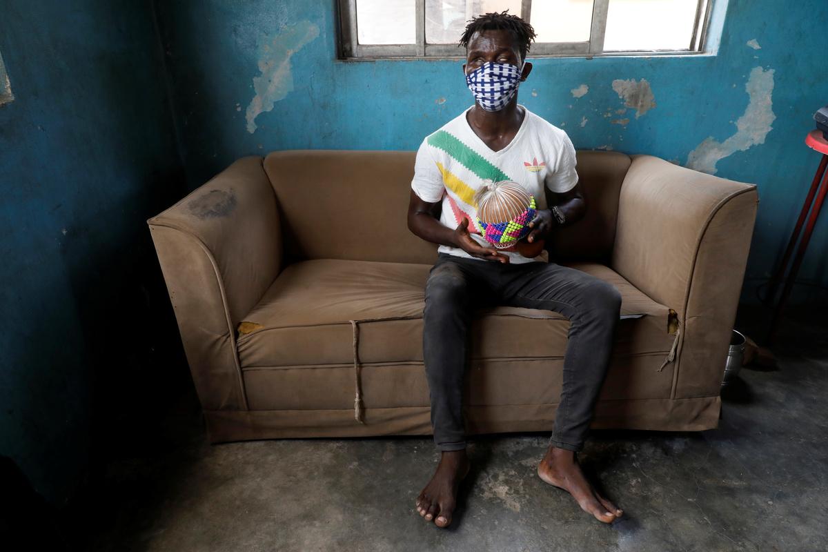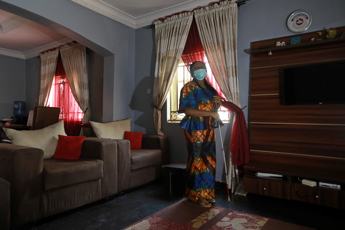 FILE PHOTO: Shobowale Kehinde, 28, an entertainer who is visually impaired, makes the bed in his room amid the coronavirus disease (COVID-19) outbreak in Lagos, Nigeria May 5, 2020. REUTERS/Temilade AdelajaFILE PHOTO: Visually impaired Juliet Gbefwi, president of Yeyedu Outreach foundation, walks around her home, while the government struggles to contain coronavirus disease (COVID-19) in Abuja, Nigeria May 1, 2020. REUTERS/Afolabi SotundeFILE PHOTO: Shobowale Kehinde, 28, an entertainer who is visually impaired, poses for a photo in the corridor at his church amid the coronavirus disease (COVID-19) outbreak in Lagos, Nigeria May 5, 2020. REUTERS/Temilade AdelajaFILE PHOTO: Visually impaired Juliet Gbefwi, president, Yeyedu Outreach Foundation, is seen during an interview with Reuters, while the government struggles to contain coronavirus disease (COVID-19), in Abuja Nigeria May 1, 2020. REUTERS/Afolabi SotundeFILE PHOTO: Shobowale Kehinde, 28, an entertainer who is visually impaired, poses for a picture in his room amid the coronavirus disease (COVID-19) outbreak in Lagos, Nigeria May 5, 2020. REUTERS/Temilade AdelajaFILE PHOTO: Shobowale Kehinde, 28, an entertainer who is visually impaired, holds the gate of his church while he waits for his friend amid the coronavirus disease (COVID-19) outbreak in Lagos, Nigeria May 5, 2020. REUTERS/Temilade AdelajaFILE PHOTO: Shobowale Kehinde, 28, an entertainer who is visually impaired, poses for a picture with his musical instrument called "shekere" in his room amid the coronavirus disease (COVID-19) outbreak in Lagos, Nigeria May 5, 2020. REUTERS/Temilade AdelajaFILE PHOTO: Shobowale Kehinde, 28, an entertainer who is visually impaired, sings as he plays his musical instrument called the "shekere" in his room amid the coronavirus disease (COVID-19) outbreak in Lagos, Nigeria May 5, 2020. REUTERS/Temilade AdelajaFILE PHOTO: Shobowale Kehinde, 28, an entertainer who is visually impaired, climbs the stairs from his room amid the coronavirus disease (COVID-19) outbreak in Lagos, Nigeria May 5, 2020. REUTERS/Temilade Adelaja