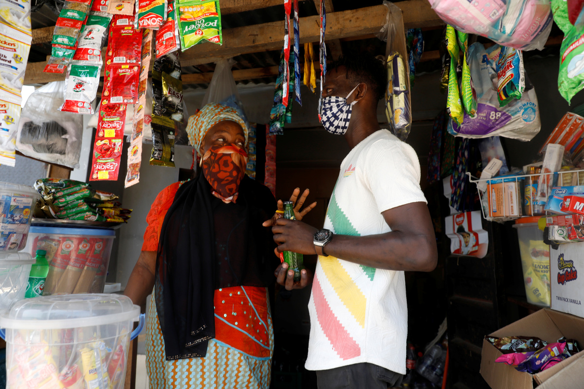 FILE PHOTO: Shobowale Kehinde, 28, an entertainer who is visually impaired, buys a soft-drink bottle at a store in Iyawa area amid the coronavirus disease (COVID-19) outbreak in Lagos, Nigeria May 5, 2020. REUTERS/Temilade Adelaja