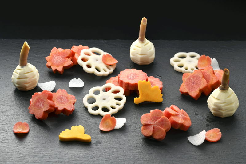 "Nowadays, when it becomes difficult for us to get a feel for each season through food, [decoratively cut vegetables] are essential to convey the sense of season."