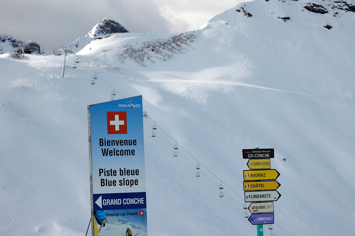 But just 5 km (3 miles) away, holidaymakers are schussing down the same slopes on the other side of the border in Switzerland, where less strict restrictions mean it's business as usual in the Dents du Midi ski region.