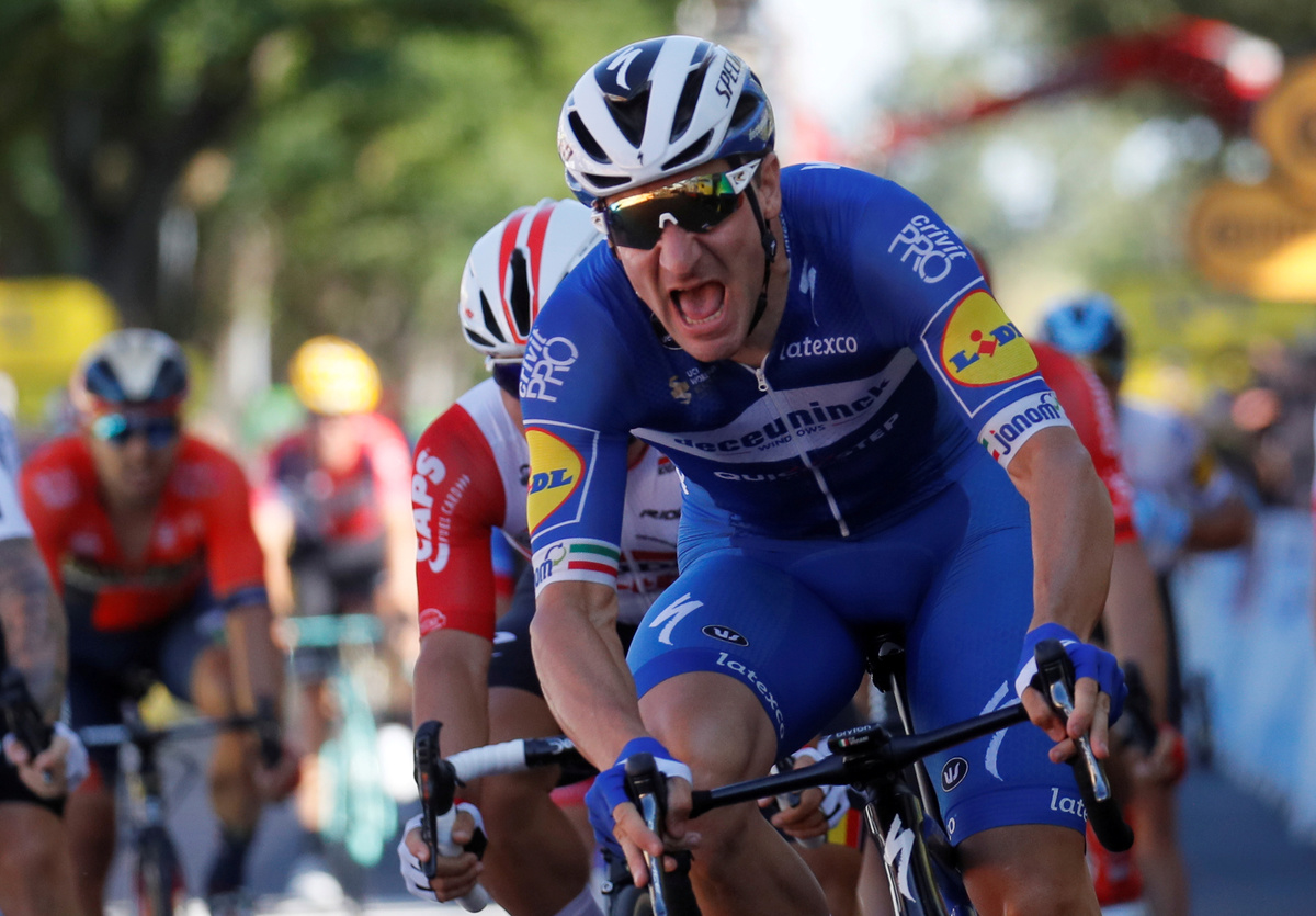 But Viviani stayed safe and beat Bora-Hansgrohe's Irish rider Sam Bennett to the line, with Denmark's national champion Michael Morkov third.