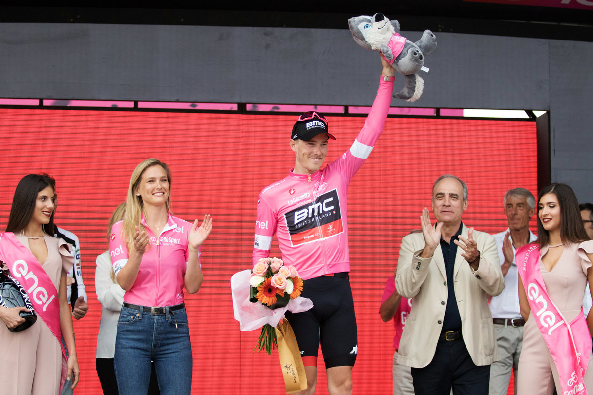 BMC Racing rider Dennis won the second intermediate sprint to gain crucial bonus seconds and eclipse defending champion Tom Dumoulin, of Team Sunweb, to take the pink jersey.