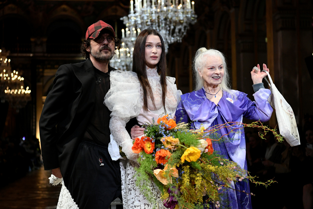 A model presents a creation by designers Vivienne Westwood and Andreas Kronthaler as part of their Fall/Winter 2020/21 women's ready-to-wear collection show during Paris Fashion Week in Paris, France February 29, 2020. REUTERS/Piroschka van de WouwDesigners Vivienne Westwood and Andreas Kronthaler pose with model Bella Hadid after their Fall/Winter 2020/21 women's ready-to-wear collection show during Paris Fashion Week in Paris, France February 29, 2020. REUTERS/Piroschka van de WouwA model presents a creation during the Vivienne Westwood and Andreas Kronthaler Fall/Winter 2020/21 women's ready-to-wear collection show at Paris Fashion Week in Paris, France February 29, 2020. REUTERS/Piroschka van de WouwA model presents a creation by designers Vivienne Westwood and Andreas Kronthaler as part of their Fall/Winter 2020/21 women's ready-to-wear collection show during Paris Fashion Week in Paris, France February 29, 2020. REUTERS/Piroschka van de WouwA model presents a creation by designers Vivienne Westwood and Andreas Kronthaler as part of their Fall/Winter 2020/21 women's ready-to-wear collection show during Paris Fashion Week in Paris, France February 29, 2020. REUTERS/Piroschka van de WouwDesigner Andreas Kronthaler leans in to kiss model Bella Hadid as fellow designer Vivienne Westwood walks to greet the audience after their Fall/Winter 2020/21 women's ready-to-wear collection show during Paris Fashion Week in Paris, France February 29, 2020. REUTERS/Piroschka van de WouwA model presents a creation by designers Vivienne Westwood and Andreas Kronthaler as part of their Fall/Winter 2020/21 women's ready-to-wear collection show during Paris Fashion Week in Paris, France February 29, 2020. REUTERS/Piroschka van de WouwA model presents a creation by designers Vivienne Westwood and Andreas Kronthaler as part of their Fall/Winter 2020/21 women's ready-to-wear collection show during Paris Fashion Week in Paris, France February 29, 2020. REUTERS/Piroschka van de WouwA model presents a creation by designers Vivienne Westwood and Andreas Kronthaler as part of their Fall/Winter 2020/21 women's ready-to-wear collection show during Paris Fashion Week in Paris, France February 29, 2020. REUTERS/Piroschka van de WouwA model presents a creation by designers Vivienne Westwood and Andreas Kronthaler as part of their Fall/Winter 2020/21 women's ready-to-wear collection show during Paris Fashion Week in Paris, France February 29, 2020. REUTERS/Piroschka van de WouwA model presents a creation by designers Vivienne Westwood and Andreas Kronthaler as part of their Fall/Winter 2020/21 women's ready-to-wear collection show during Paris Fashion Week in Paris, France February 29, 2020. REUTERS/Piroschka van de WouwA model presents a creation by designers Vivienne Westwood and Andreas Kronthaler as part of their Fall/Winter 2020/21 women's ready-to-wear collection show during Paris Fashion Week in Paris, France February 29, 2020. REUTERS/Piroschka van de Wouw