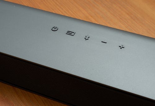 The soundbar itself is fairly sleek. The housing is entirely plastic, but it has a neutral gray color and a good texture that makes it feel closer to metal. Both the soundbar and rear speakers have a sloped look to them towards the back that should help it sit discreetly under your TV. The front mesh is fabric instead of plastic or metal, and could fray over time if you have particularly rambunctious children or pets.