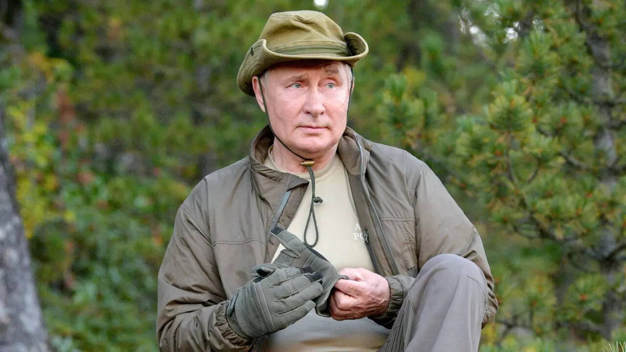 Russian President Vladimir Putin sits on a rock as he walks in the Taiga. (AFP)