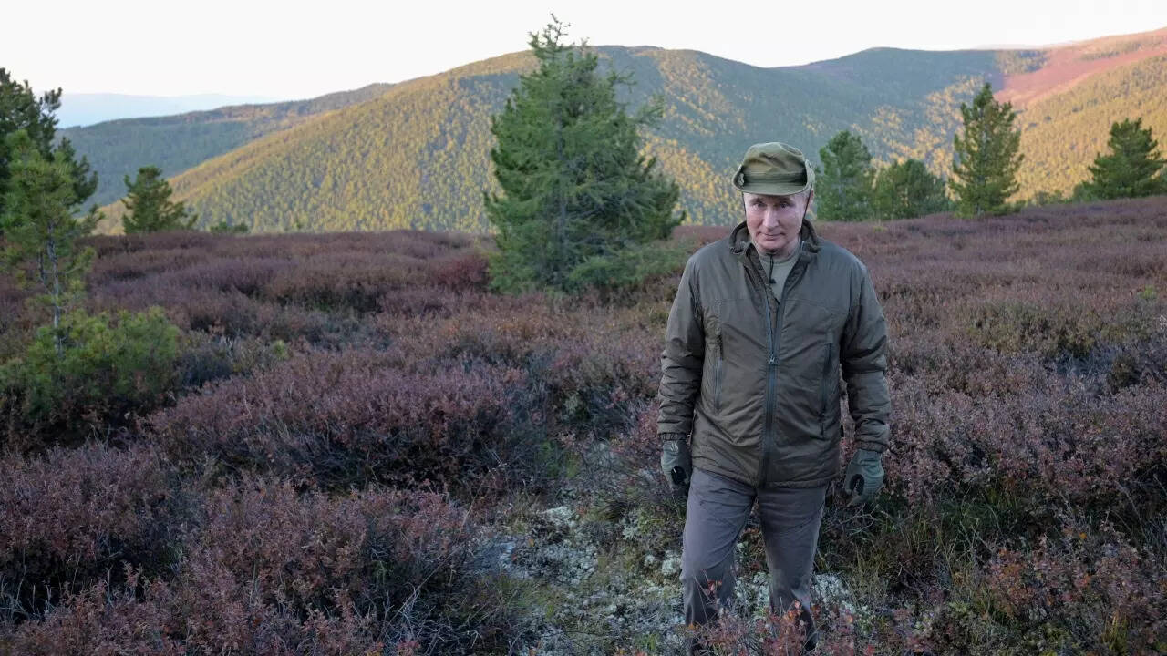 Russian President Vladimir Putin walking through lush meadows in Siberia. (Reuters)