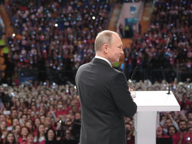In a glitzy event in Moscow attended by young people, a host asked Putin if he would be running for re-election in March.