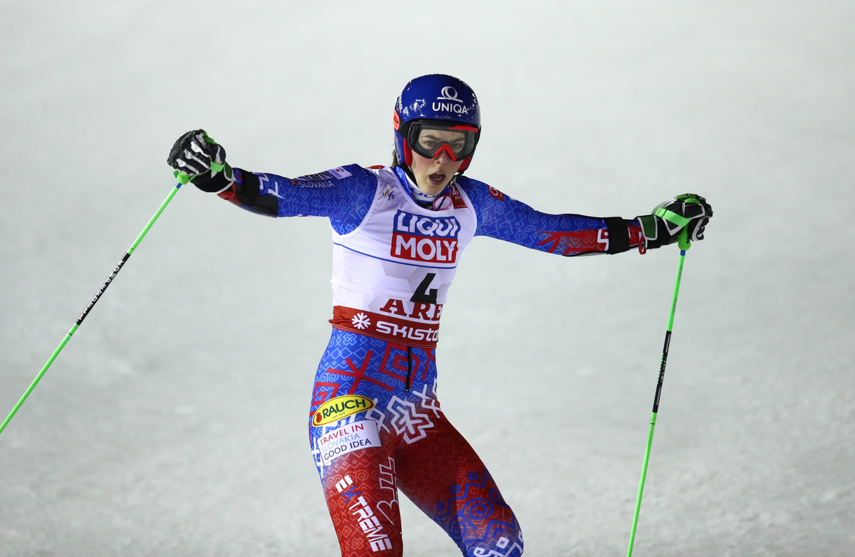 She will go head-to-head again with American Shiffrin in the women's slalom at the weekend when both will be aiming for their second gold of the championships after Shiffrin won the Super-G title last week.