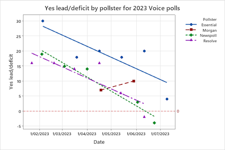 The last Essential Voice poll in June gave “yes” a 60–40 lead, in contrast to a 51–49 “no” lead from Resolve in a poll conducted at the same time.