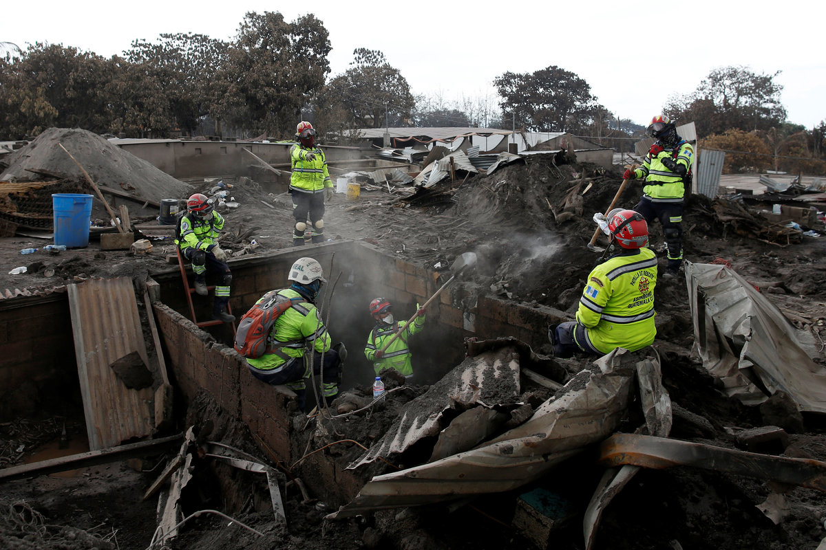Guatemalan rescue workers continue looking for families in an area affected by the eruption of the Fuego volcano in San Miguel Los Lotes in Escuintla, Guatemala June 13, 2018. REUTERS/Carlos Jasso