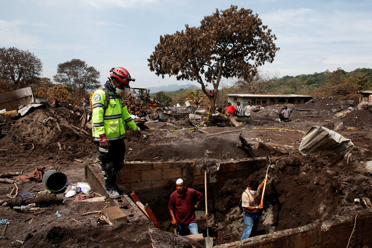 Members of the Guatemala's disaster management agency (CONRED) inspect an area affected by a lahar from Fuego volcano at El Rodeo, Guatemala June 13, 2018. REUTERS/Jose CabezasAn area affected by the Fuego volcano is seen from San Miguel Los Lotes, Guatemala June 13, 2018. REUTERS/Luis Echeverria An area affected by a lahar from Fuego volcano is seen in El Rodeo, Guatemala June 13, 2018. REUTERS/Jose CabezasMembers of the Guatemala's disaster management agency (CONRED) inspect an area affected by a lahar from Fuego volcano at El Rodeo, Guatemala June 13, 2018. REUTERS/Jose CabezasA resident holds framed pictures of his family, recovered from his house in an area affected by the eruption of the Fuego volcano, in San Miguel Los Lotes, in Escuintla, Guatemala June 13, 2018. REUTERS/Luis EcheverriaSmoke spews from the Fuego volcano, seen from San Miguel Los Lotes in Escuintla, Guatemala June 13, 2018. REUTERS/Carlos JassoMamerto Alvarez rests as he continues looking for his family in an area affected by the eruption of the Fuego volcano in San Miguel Los Lotes in Escuintla, Guatemala June 13, 2018. REUTERS/Carlos JassoAn excavator removes ash from an area affected by the eruption of Fuego volcano in San Miguel Los Lotes in Escuintla, Guatemala June 13, 2018. REUTERS/Luis EcheverriaAn area affected by a lahar from Fuego volcano is seen in El Rodeo, Guatemala June 13, 2018. REUTERS/Jose CabezasA general view shows an area affected by the eruption of the Fuego volcano in San Miguel Los Lotes, in Escuintla, Guatemala June 13, 2018. REUTERS/Luis EcheverriaMembers of the Guatemala's disaster management agency (CONRED) inspect an area affected by a lahar from Fuego volcano at El Rodeo, Guatemala June 13, 2018. REUTERS/Jose CabezasA view of an area affected by a lahar from Fuego volcano at El Rodeo, Guatemala June 13, 2018. REUTERS/Jose CabezasAn area affected by a lahar from Fuego volcano is seen in El Rodeo, Guatemala June 13, 2018. REUTERS/Jose CabezasA member of the Guatemala's disaster management agency (CONRED) gestures while inspecting an area affected by a lahar from Fuego volcano at El Rodeo, Guatemala June 13, 2018. REUTERS/Jose CabezasA road affected by a lahar from Fuego volcano is seen in El Rodeo, Guatemala June 13, 2018. REUTERS/Jose Cabezas