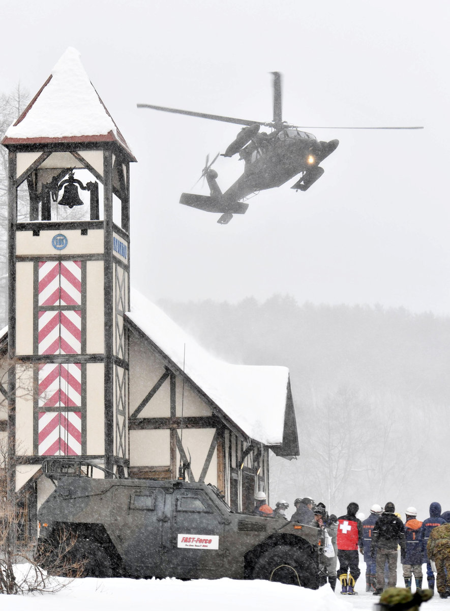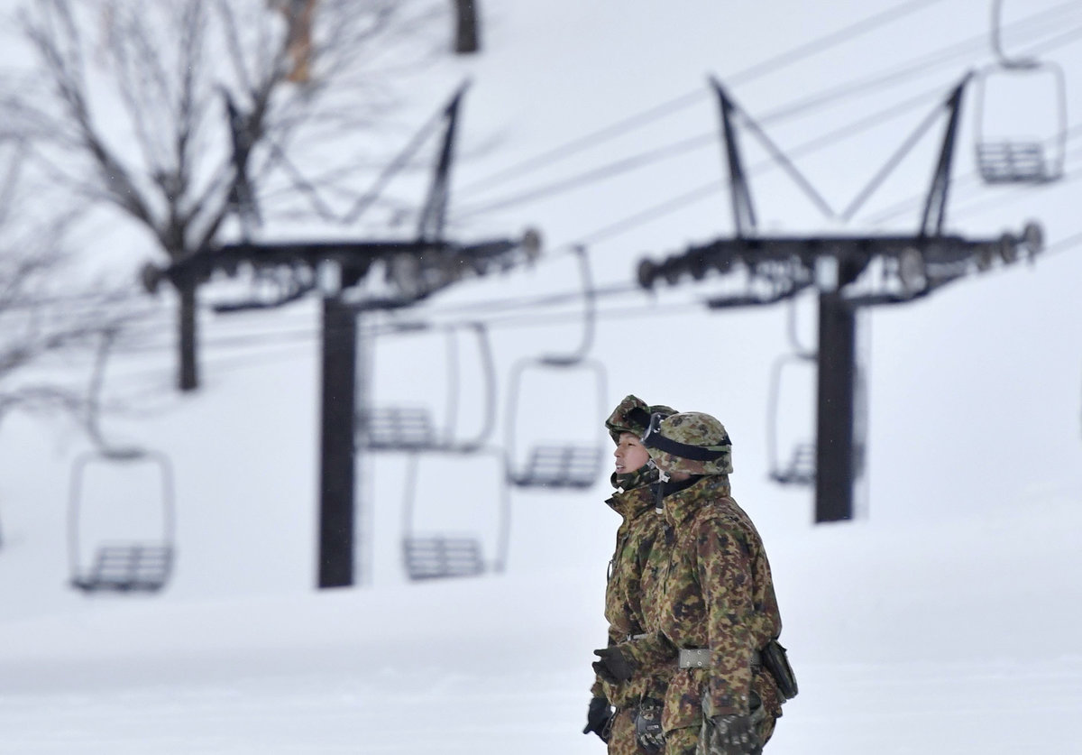 Seven of those struck by rocks were members of Japan's Ground Self Defence Force (SDF) engaged in winter training maneuvers, the Ministry of Defence said in a statement.