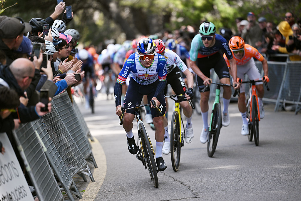 Rather, it became up to Red Bull-Bora-Hansgrohe, keen to see if Evenepoel might take a repeat stage victory in Montjuic after his 2023 win there, who put a rider on the front to keep the powerful quintet under control. The gap hovered at around two minutes on the approach through Barcelona's broad boulevards to the showdown in Montjuic's very technical, constantly undulating circuit, but by the first ascent of seven inside the park, it had dropped to half that.