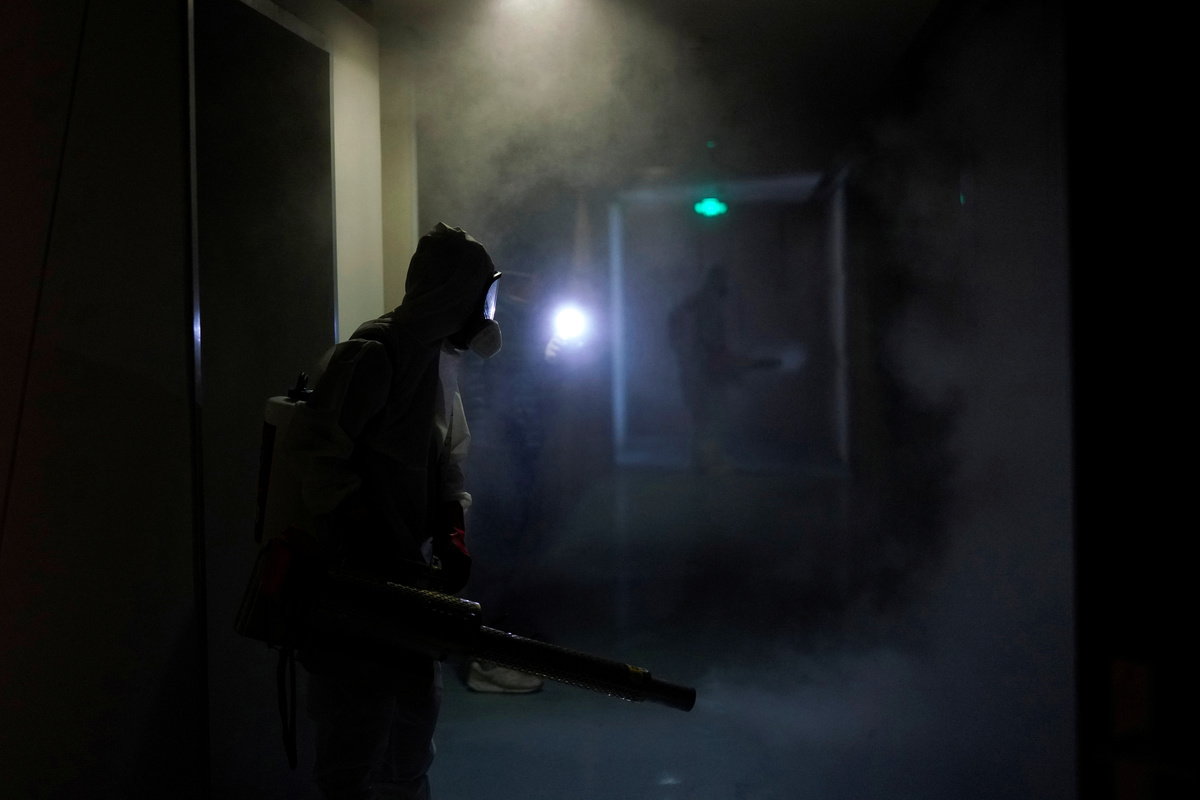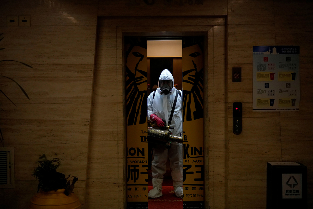 "We have teachers, policemen, entrepreneurs," he told Reuters on Thursday about his hazmat suit-clad team, who were preparing to walk through the Wuhan Qintai Grand Theatre to disinfect its seats and hallways with white plumes of chlorine dioxide.