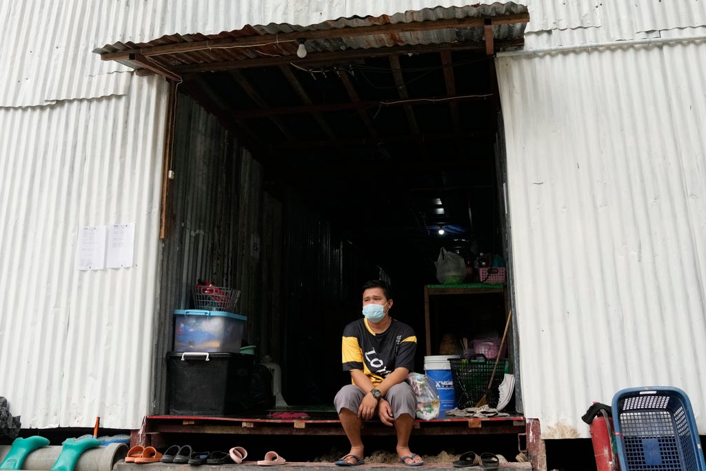 No work has meant no income for him or his wife, who have been confined to one of more than 600 workers’ camps dotted around Bangkok living in small room in a ramshackle building with boards and blankets to cover missing windows.