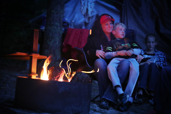 After dinner, we lit a campfire. At the fire ring, a worn branch lay on the ground; one end was charred, the other had been bit. Clearly at least two previous visitors _ a fire-stirring human and a tooth-whittling beaver _ had found the wooden stick a useful tool.