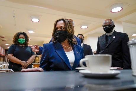 Harris' visit came on the same day that a jury in Minneapolis began deliberating in the murder trial of former police officer Derek Chauvin in the killing of George Floyd, a Black man whose death has become a touchstone in the Black Lives Matter movement and calls for policing reform.