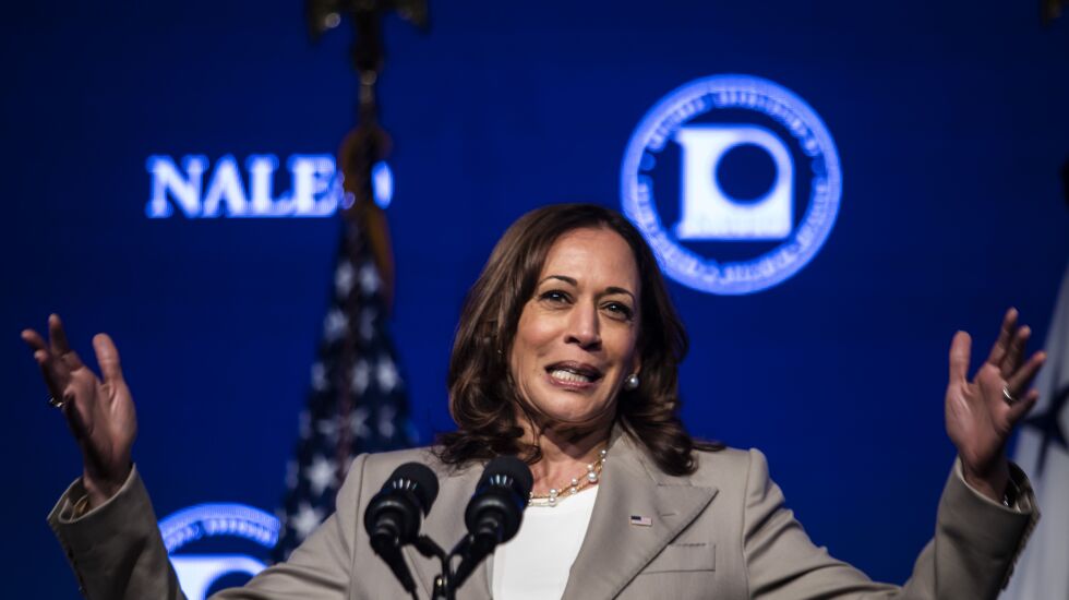 As Harris has recounted now several times — most recently at a Democratic National Committee fundraiser June 30 in Los Gatos, Calif. — Harris was on Air Force Two with Senate Judiciary Committee Chair Sen. Dick Durbin, D-Ill., heading to the airport in Aurora when they learned the Supreme Court had reversed Roe v. Wade, ending federal protections for abortion rights. After a speech in Plainfield blasting the Supreme Court decision, Harris traveled to Chicago to speak to the annual conference of the National Association of Latino Elected and Appointed Officials.