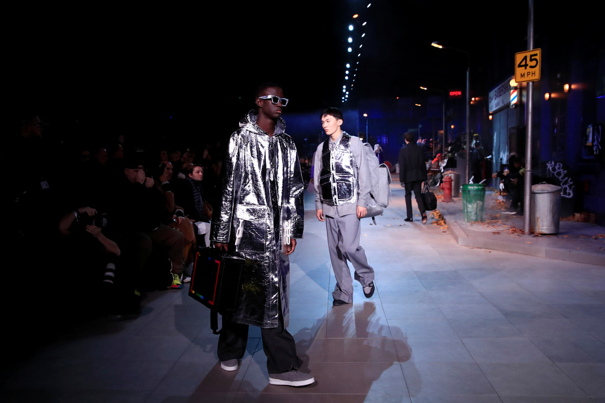 Models present creations by designer Virgil Abloh as part of his Fall/Winter 2019-2020 collection show for fashion house Louis Vuitton during Men's Fashion Week in Paris, France, January 17, 2019. REUTERS/Gonzalo Fuentes