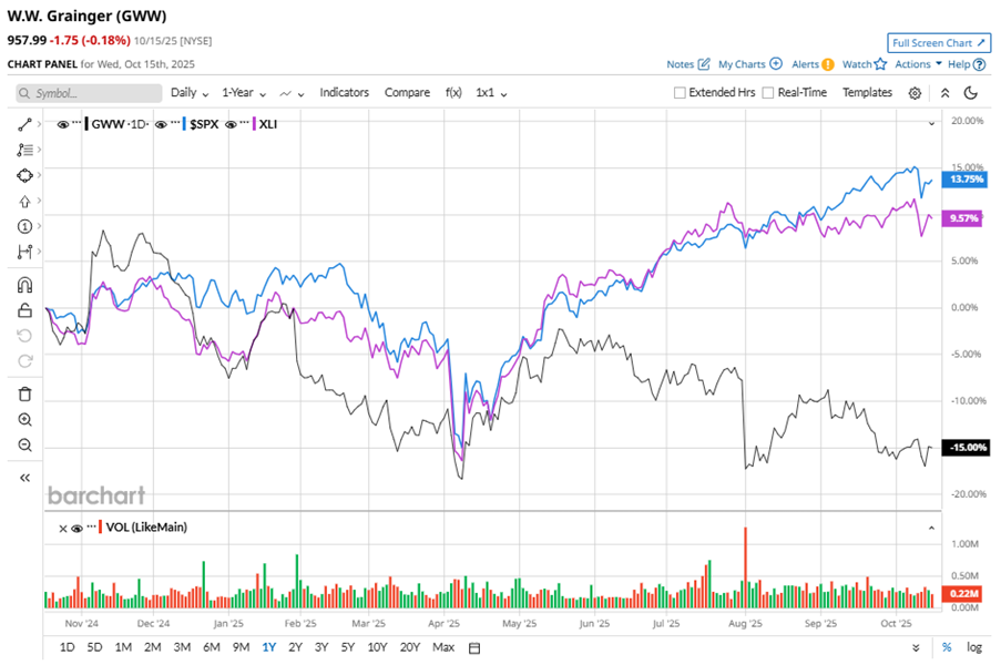 GWW stock has significantly underperformed the S&P 500 Index’s ($SPX) 14.7% gains over the past 52 weeks, with shares down 11.8% during this period. Similarly, it considerably underperformed the Industrial Select Sector SPDR Fund’s (XLI)10.4% rise over the same time frame.