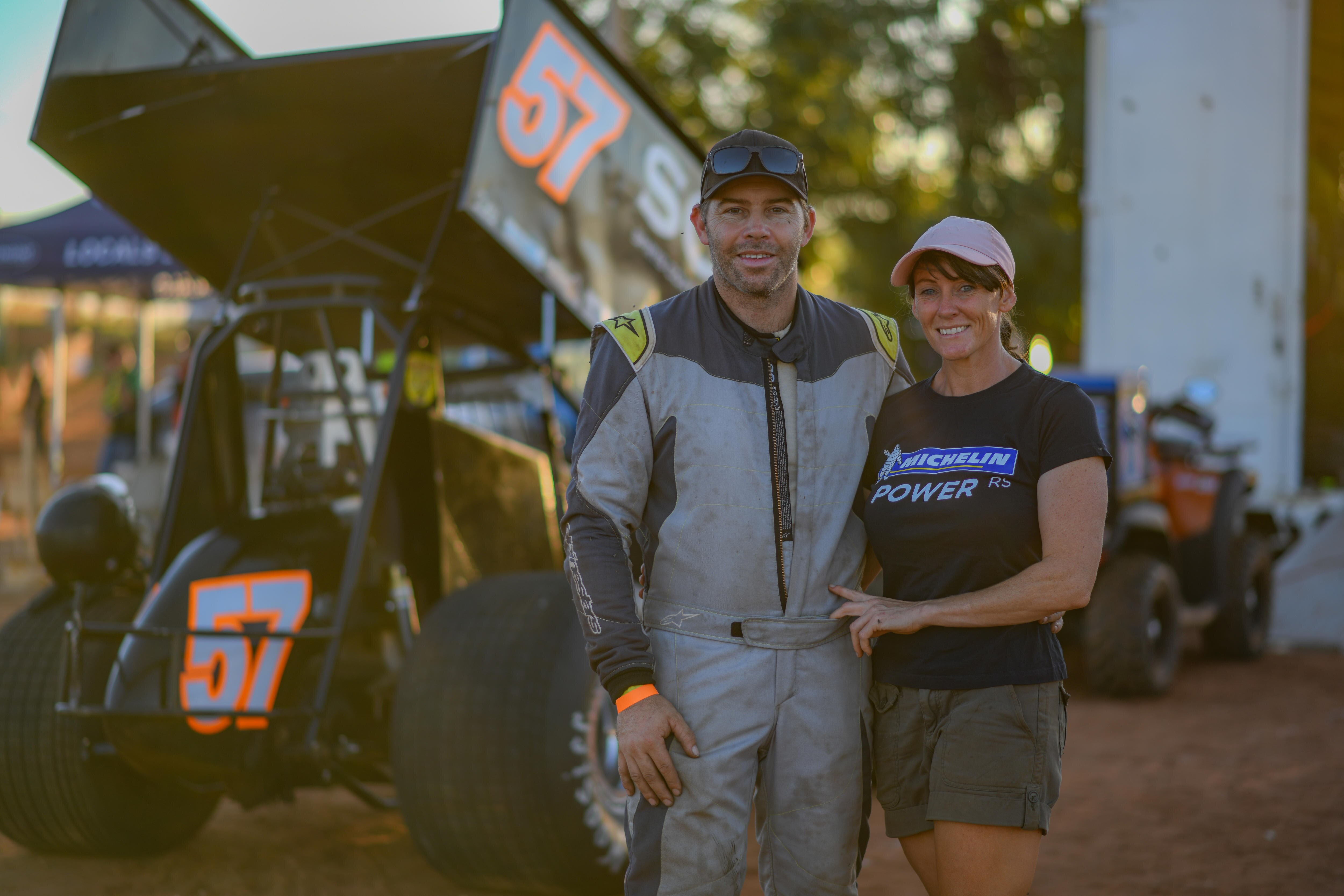 "Oh, hell yeah. I'm trying to convince him [Tim] to get a 410 or go and drive something else, so I can commandeer that one," she said, gesturing towards their sprintcar.