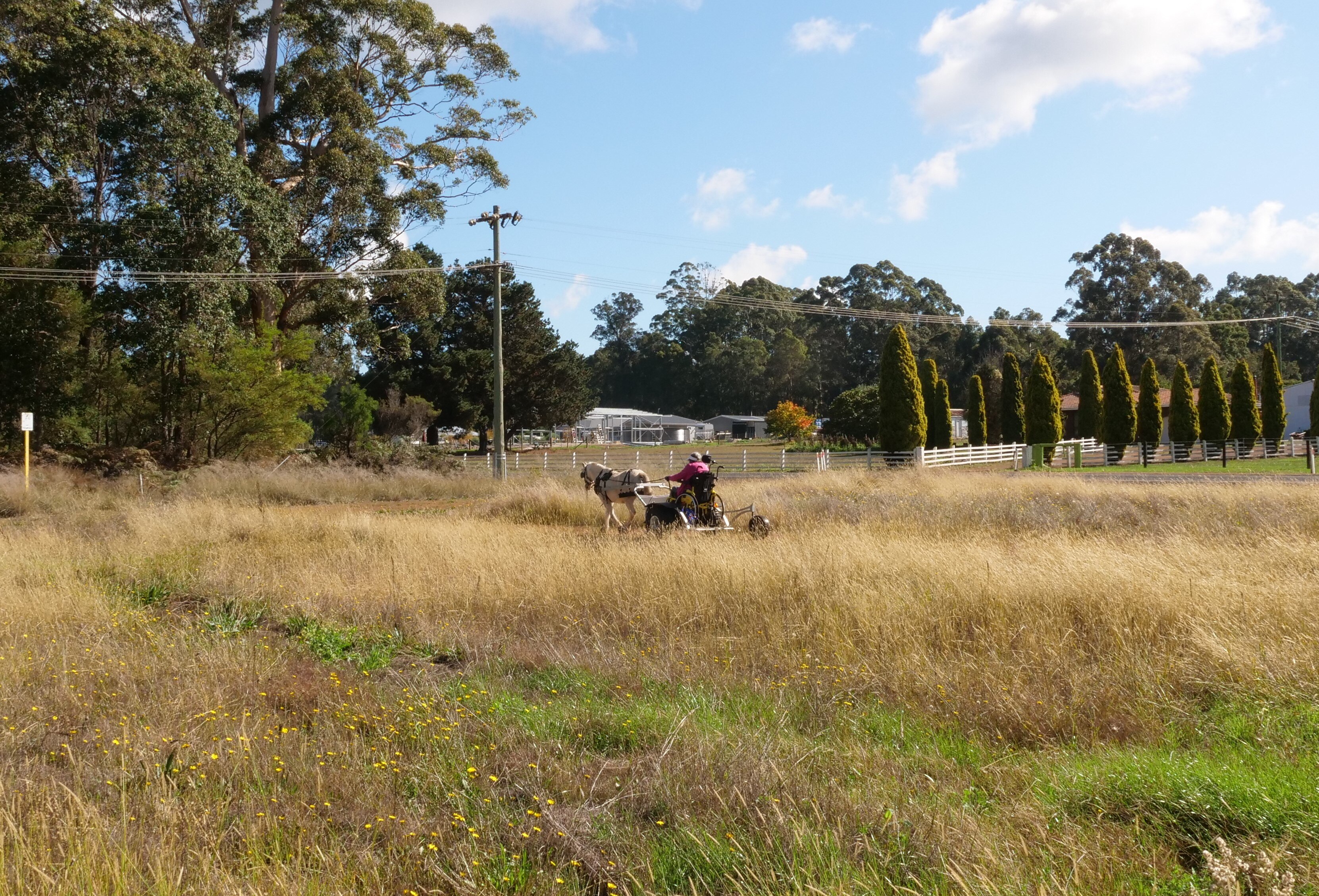 Some areas of the track are rough and undulating, but navigating these sections with her horse and cart is easy for Ms Edmonds.