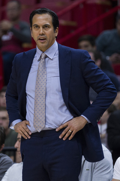 After converting a 3-pointer, Wade then was called for his second foul, with Spoelstra leaving him in the game to close the period.