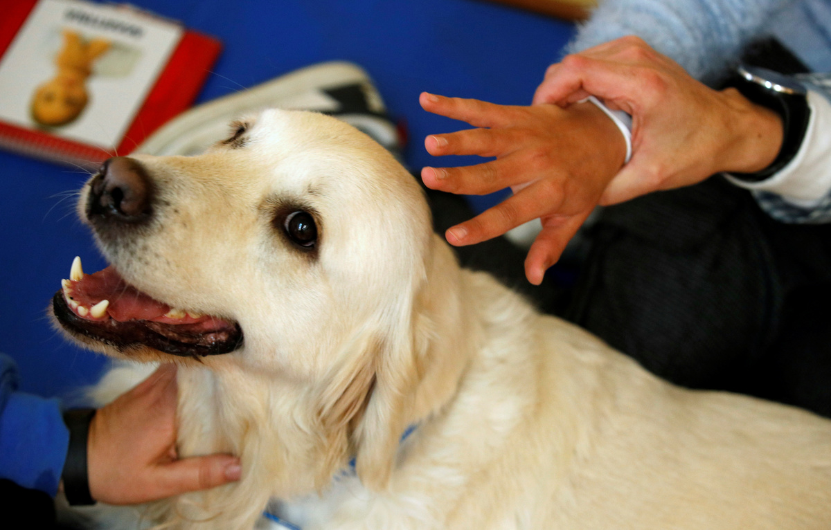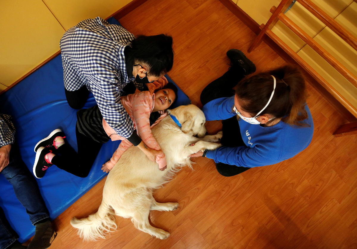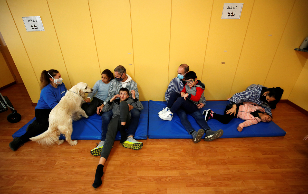 "What we have noticed a lot during the time of the pandemic is that they pay much more attention to the dog," special education teacher Meritxell Arias told Reuters as the children laughed and petted the golden retriever, who also appeared to be smiling.