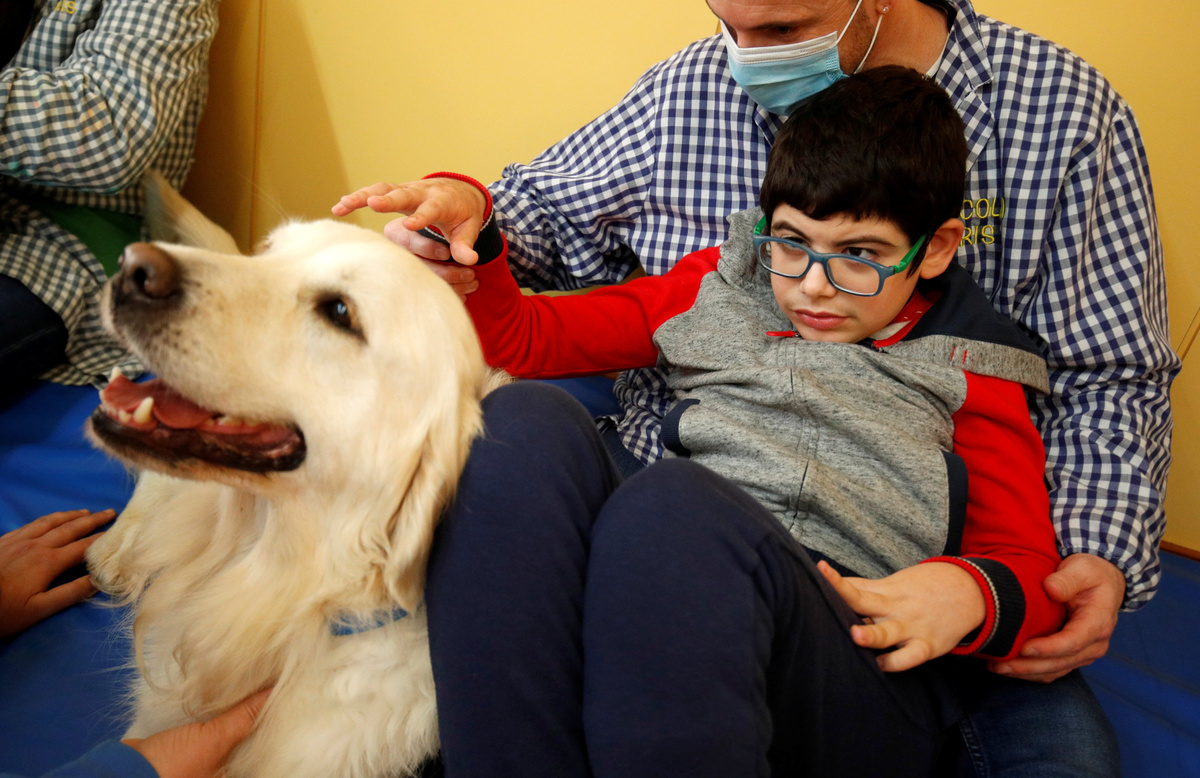 Surrounded by parents and teachers, five children with disabilities in a Spanish special-needs school cannot hide their excitement when Soul the therapy dog walks in wagging her tail.